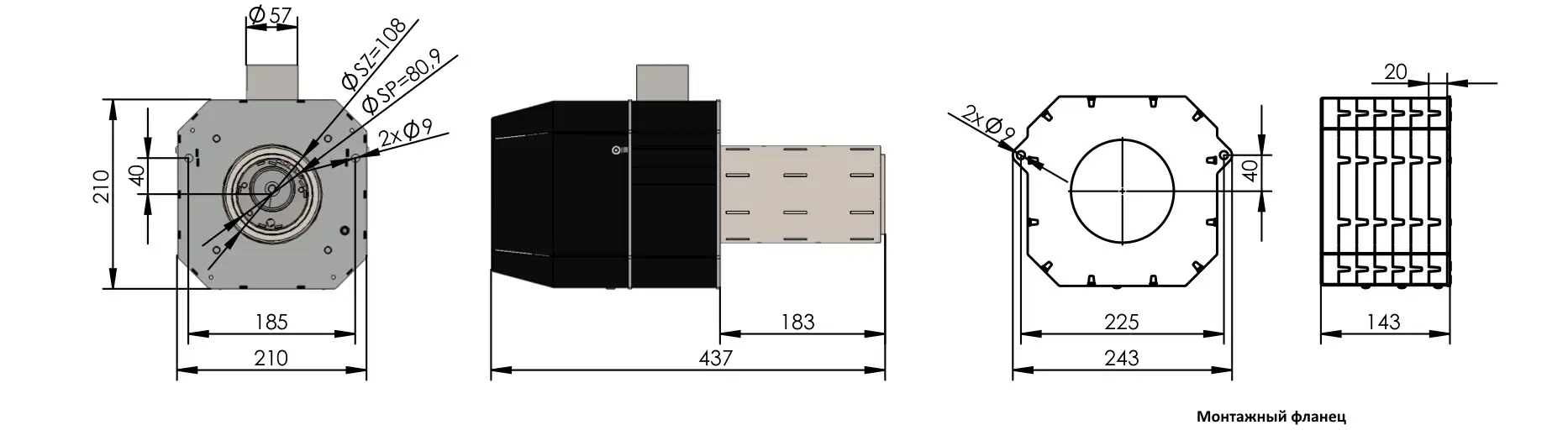 - крепление горелки до котла - монтажный фланец (докупается отдельно) (9)