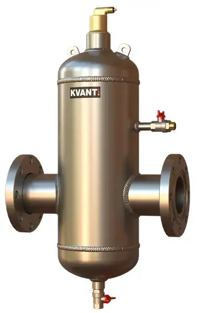 Сепаратори повітря від виробника KVANT промислової серії DisAir виготовляються в сталевому корпусі із нержавіючої сталі діаметром від 50 до 600 мм. Стандартна модель виготовляється для швидкості потоку до 1,5 м/с, а також модель Q для швидкості потоку до 3м/с. Можливе виконання як під зварку так і під фланцеве з’єднання.