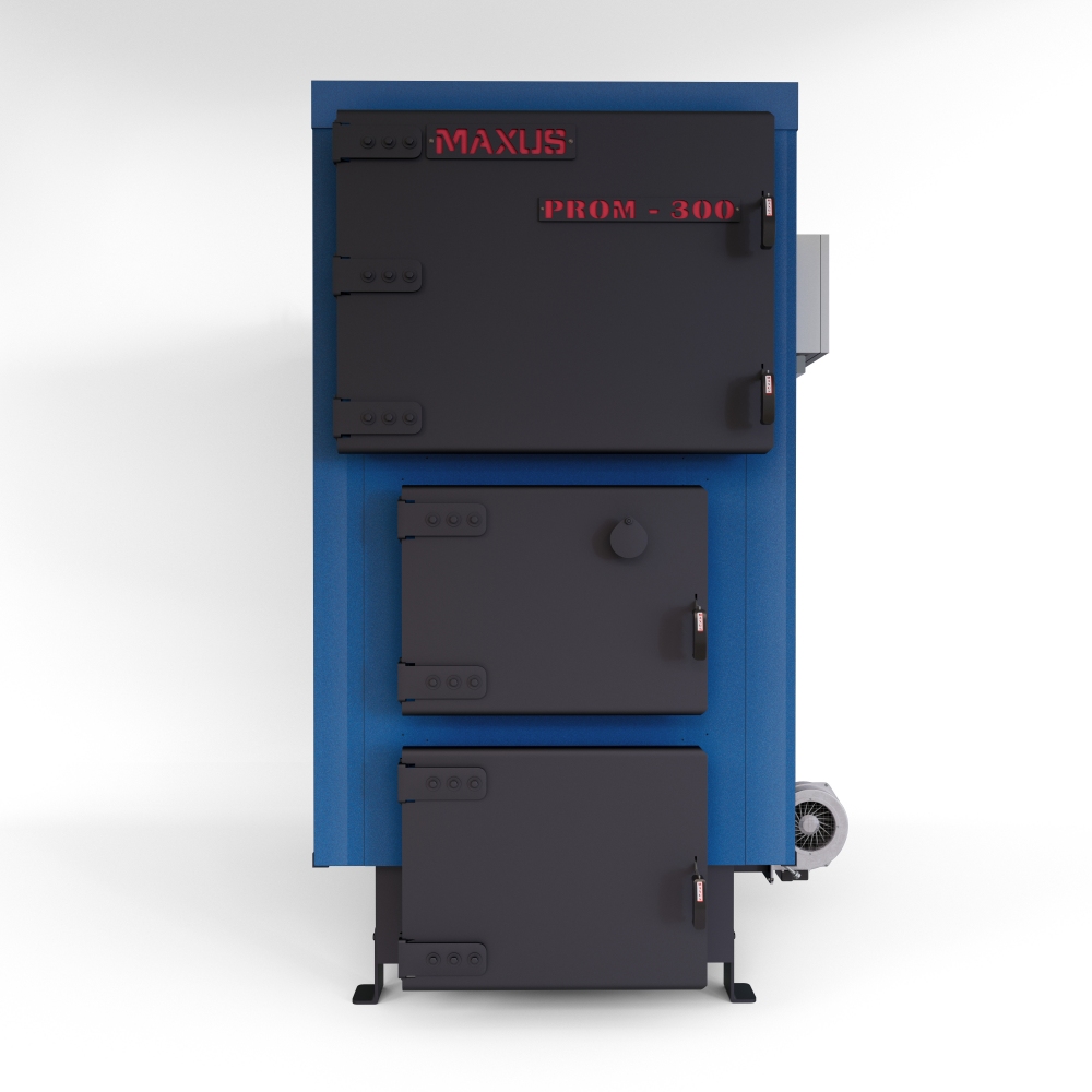 Твердопаливний котел промислового призначення Maxus PROM, потужністю 300 кіловат виготовлений для опалення приміщень площею від 2000 до 3000 квадратних метрів. Приміщення для опалення можуть бути різних типів: житлові будинки, торгові центри, склади, промислові приміщення та інші. Промисловий котел Максус являється універсальним за рахунок спалювання в ньому практично любого твердого палива.